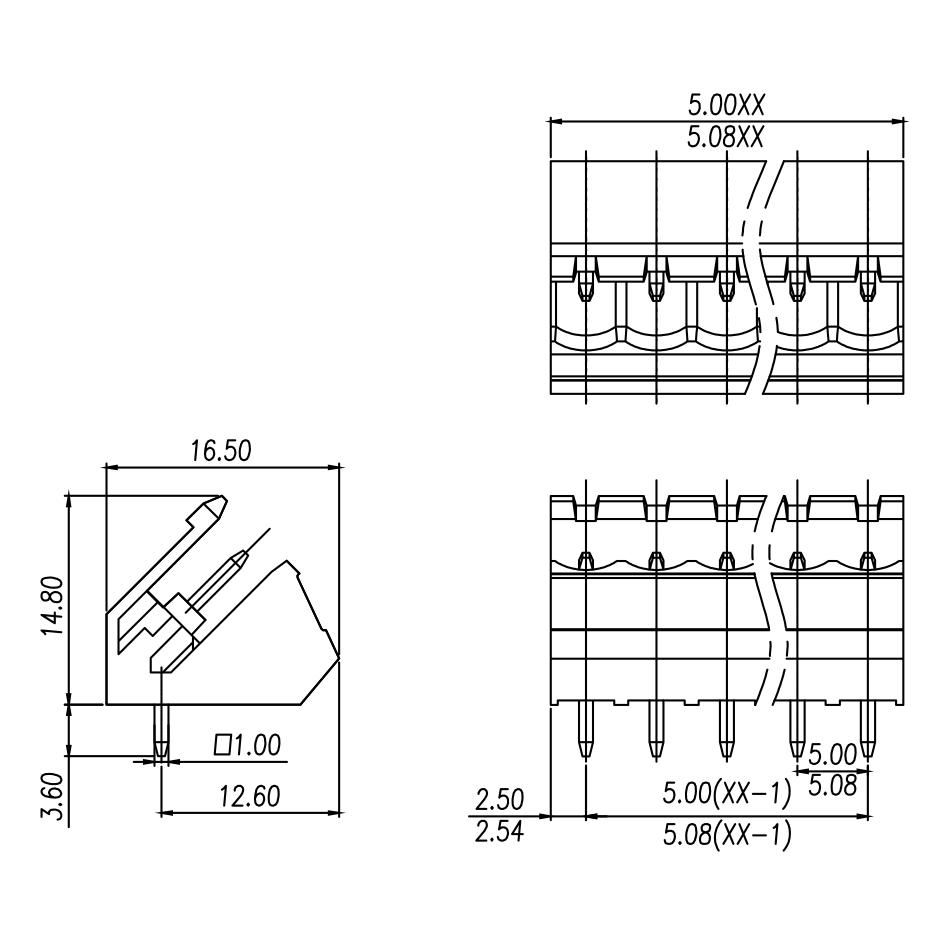 Pitch: 5.0 mm/5.08 mm